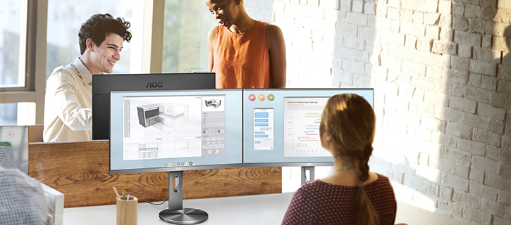 Nearly all of these monitors come with a built-in USB 3.1 Type-C dock with power Delivery for fast data transfers and flexible connectivity at home and in the office. USB-C functionality gives you everything in one—a cable, charging, data and display signal—plus it’s also possible to connect a monitor directly to a second to create twice the screen real estate. AOC’s SuperWide and UltraWide monitors make multitasking at the office a breeze, offering a comfortable, efficient and flexible experience. One monitor for all your needs.