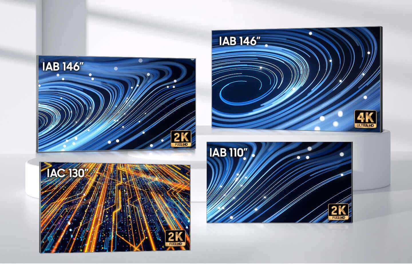 Samsung’s All-in-One solutions are less complex than traditional LED displays—just select the right model based on size and resolution. You can choose between an 130" SMD version (FHD) and three micro LED models sized 110" (FHD), 146" (FHD) as well as a 146" UHD model.