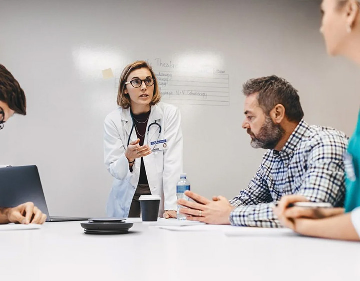 Ons aanbod uitmuntende en professionele hulpmiddelen voor samenwerking en communicatie integreren naadloos in het zorg-ecosysteem, zodat patiënten toegang hebben tot hoogwaardige zorg wanneer ze die nodig hebben, en artsen probleemloos kunnen communiceren met hun patiënten en hun collega’s.